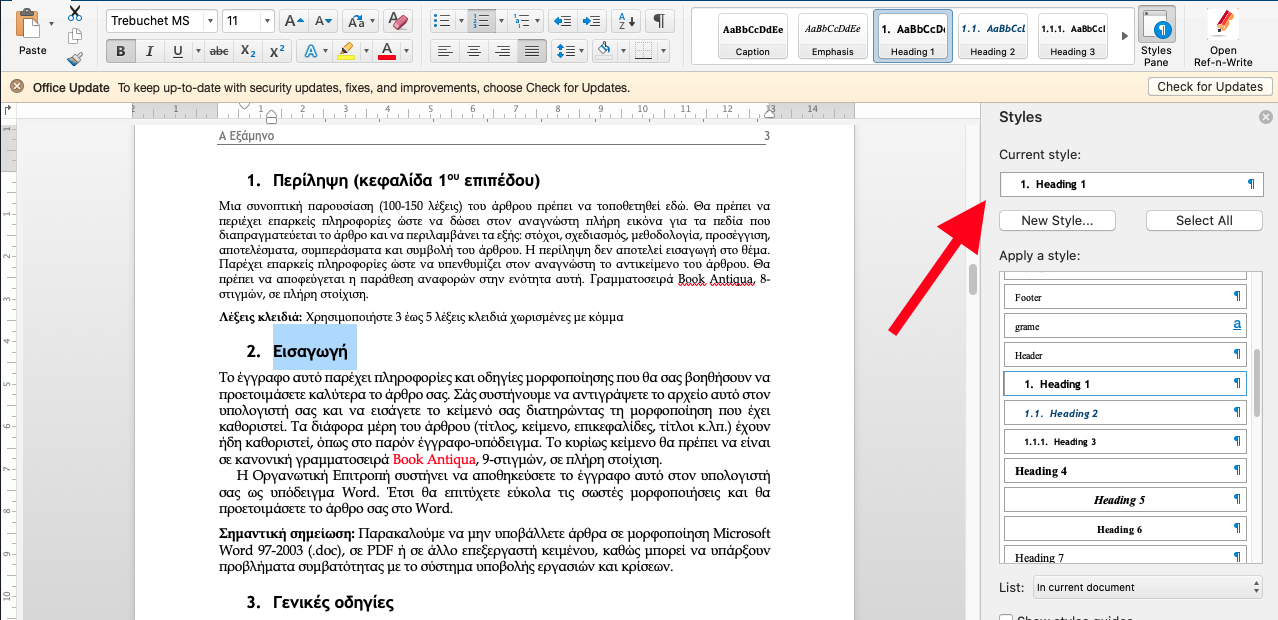 Σκοπός της εργασίας αυτής είναι να χρησιμοποιήσετε τα έτοιμα στυλ μορφοποίησης ενός εγγράφου (Μενού Μορφοποίηση / Στυλ ή ανοίγοντας το σχετικό πλευρικό παράθυρο των στυλ)